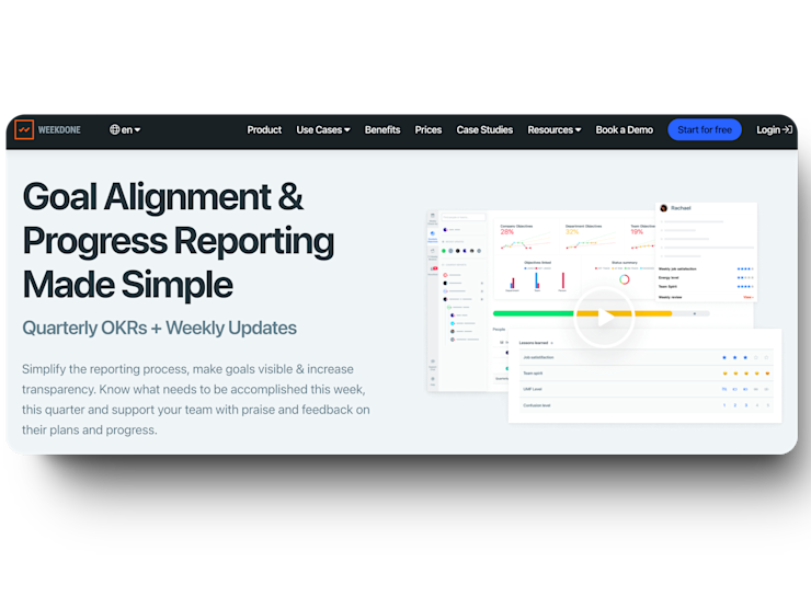 Weekdone is an OKR platform focused on weekly check-ins and team alignment. Its structured approach to goal tracking helps teams maintain focus on the right priorities by providing real-time feedback on progress.