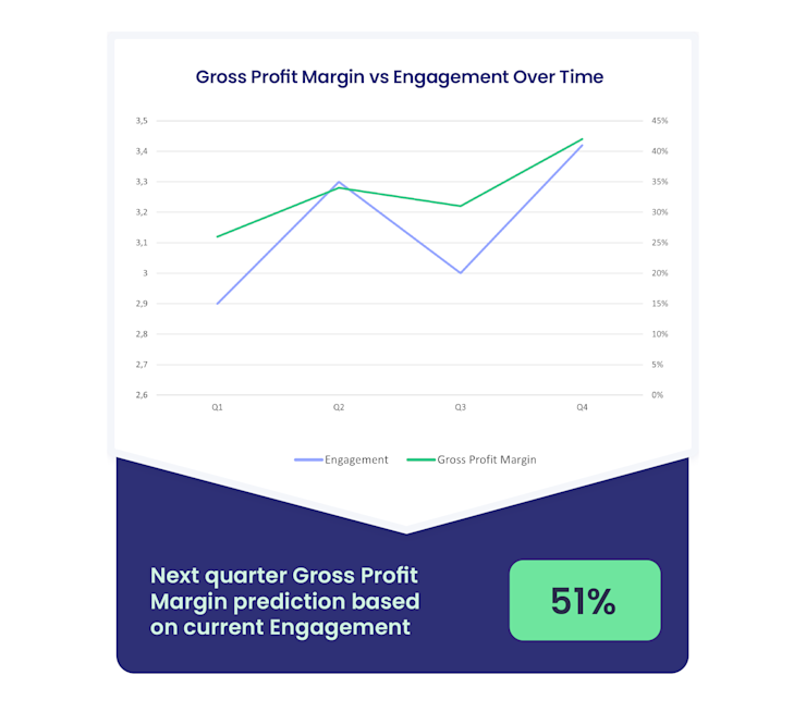 This allows for proactive adjustments in strategy and operations, aiming to enhance both employee satisfaction and financial outcomes. Financial leaders can use engagement data to predict changes in business metrics. They can then make data-driven decisions based on this information. These decisions can help drive the desired change within the organisation.
